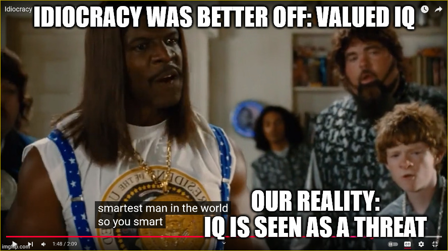 See, in fictional 2505, they valued IQ... In today's society they hold down HIGH IQ, cancel us, Pol Pot us, censor us... So they can push fake scientists, fake news...