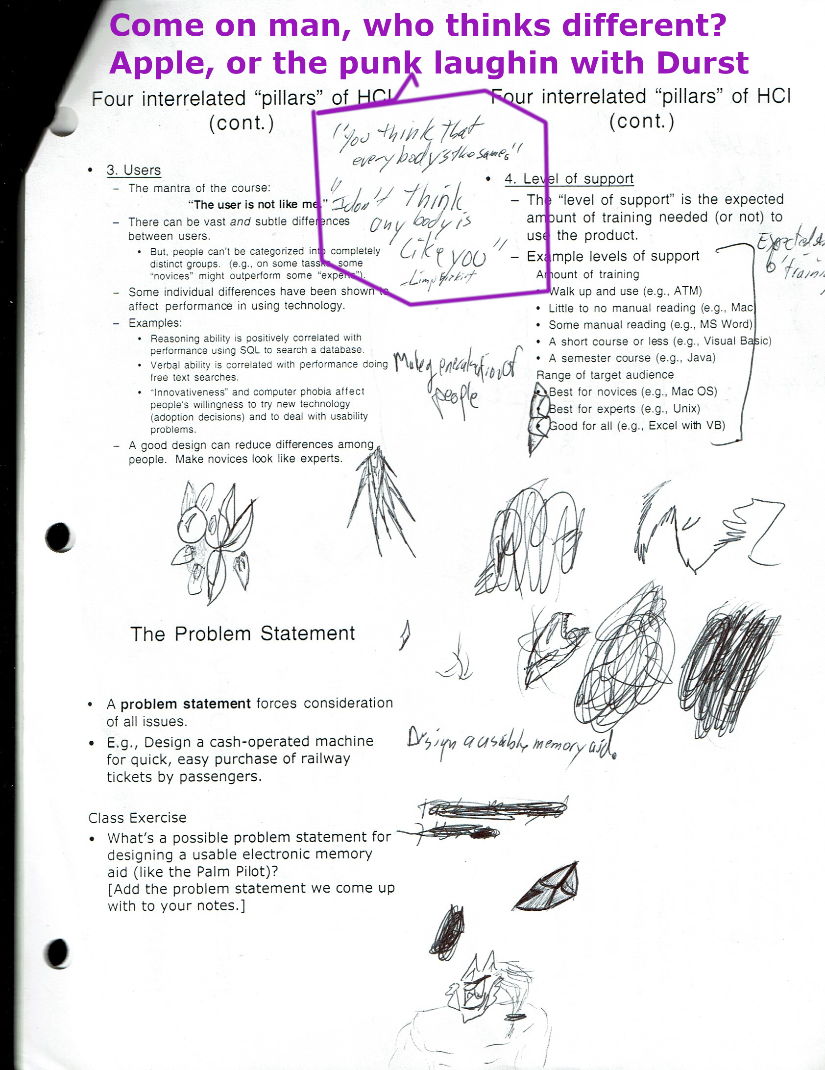 Bonus: One said we must ship new Palm Pilots with Post it Note papers stuck to the back... |||||   I can't treat the material seriously when I had more experience with menuing systems than the authors. (70,000 hrs at this point)