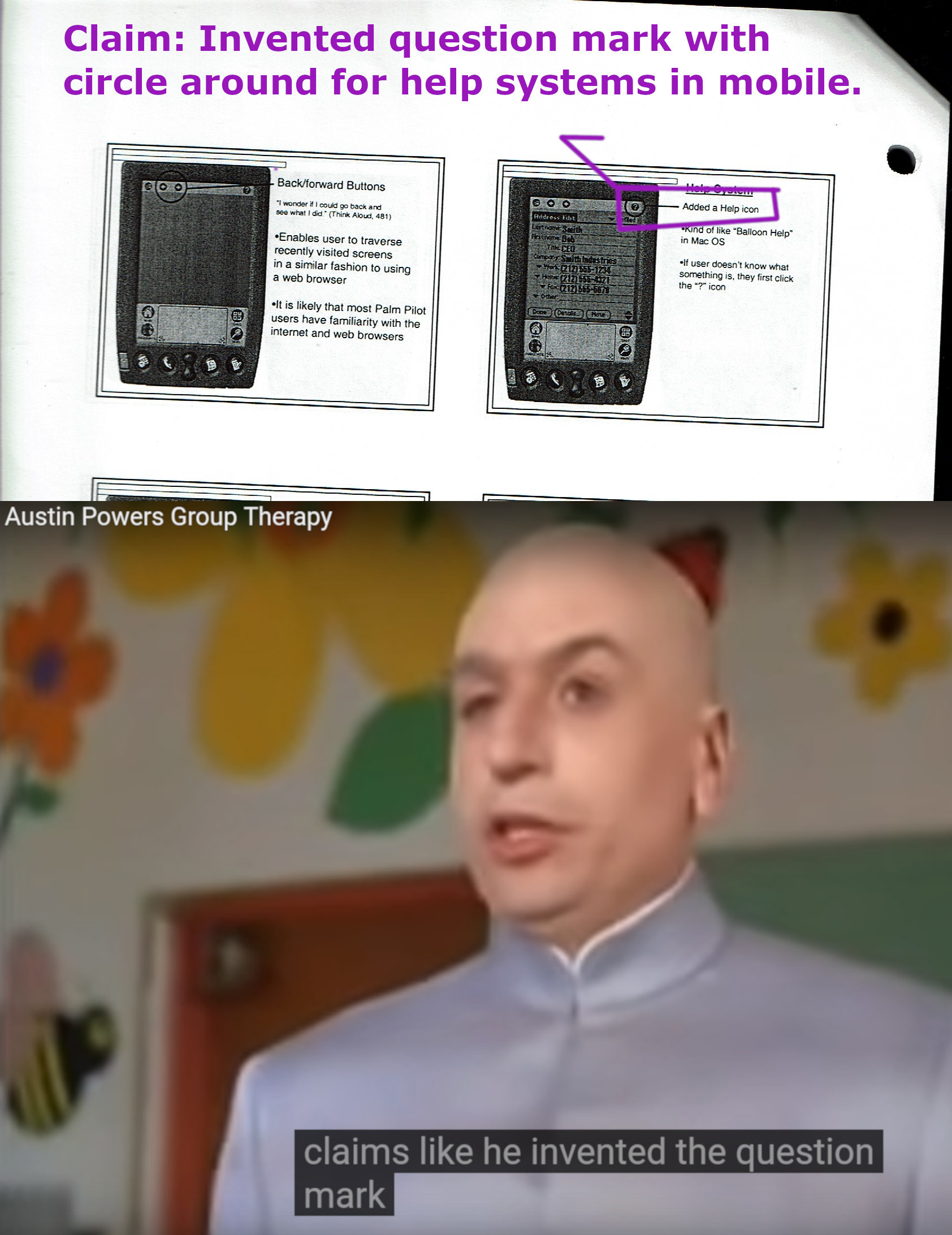 Left: The Help Icon ? with a circle around it has not been seen before 2000. So a bit of humor. ||||| Right: If Steve Jobs Plagurizing the VIRTUAL KEYBOARD wasn't enough proof they used these designs.